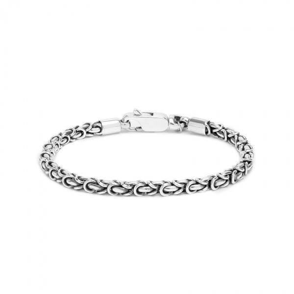 Deze zilveren armband uit de Connect serie van Silk Jewellery is een variatie op de koningsschakel waardoor het een speels effect heeft.