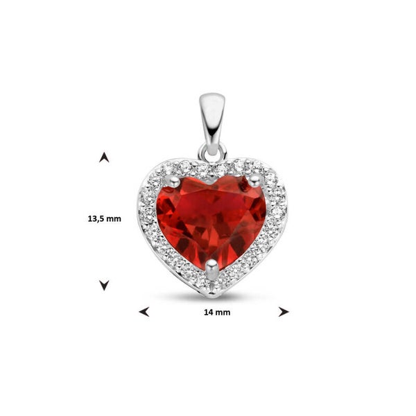Gerhodineerd 925 zilveren hanger uitgevoerd met schitterende zirkonia en een synthetische robijn. De hanger heeft een afmeting van 13.5x14mm.