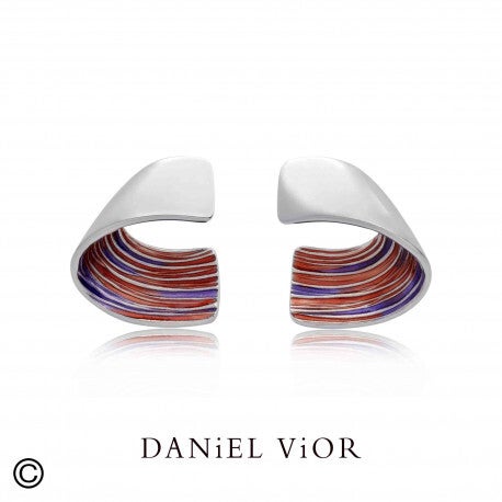 Zilveren gerhodineerde oorknoppen met accenten van rood/oranje /paars emaille