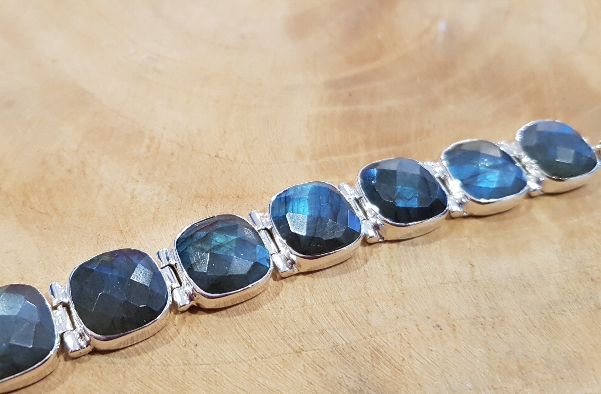 Zilveren armband heeft facet geslepen edelstenen-labradoriet