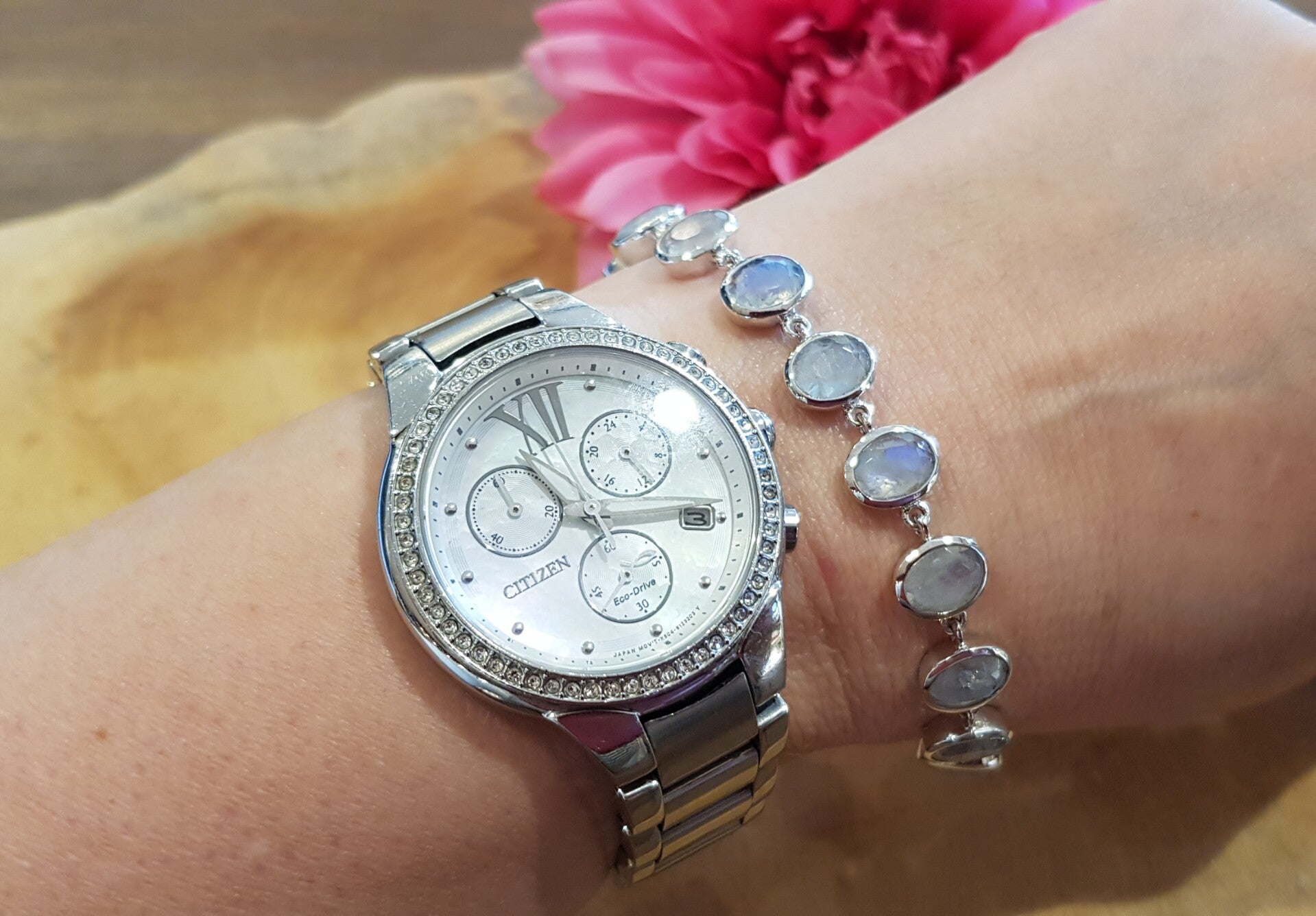 Zilveren armband zilver met ovale facet geslepen edelstenen-regenboog maansteen.