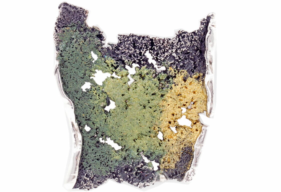 Uit de Intenzza collectie van Arior de Lichem hanger groot van zilver met mooie groene en gele tinten.