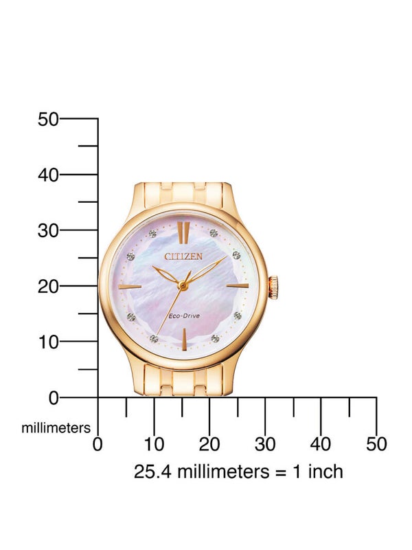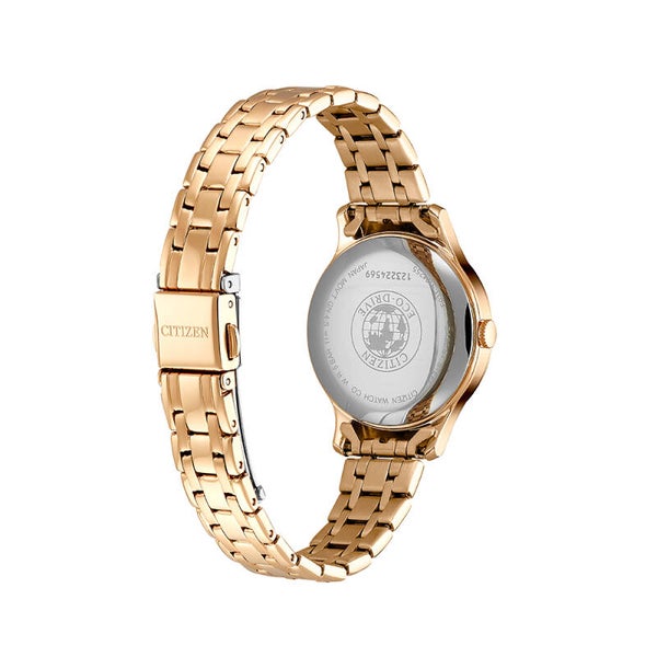 Dit Citizen Eco drive horloge van edelstaal in rosékleur uit de citizen L collectie heeft een roze parelmoer wijzerplaat en een kastdiameter van 30mm.