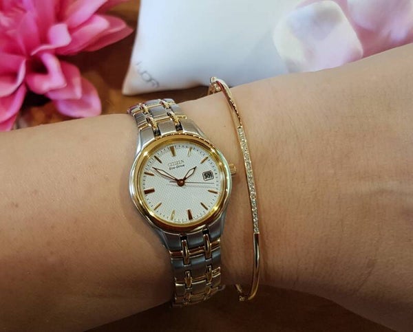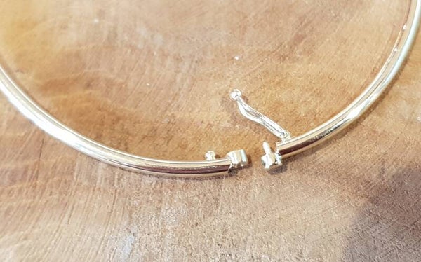 Deze Fjory bangle is 14krt. met een kern van zilver 925. Gezet met 21 diamanten.
