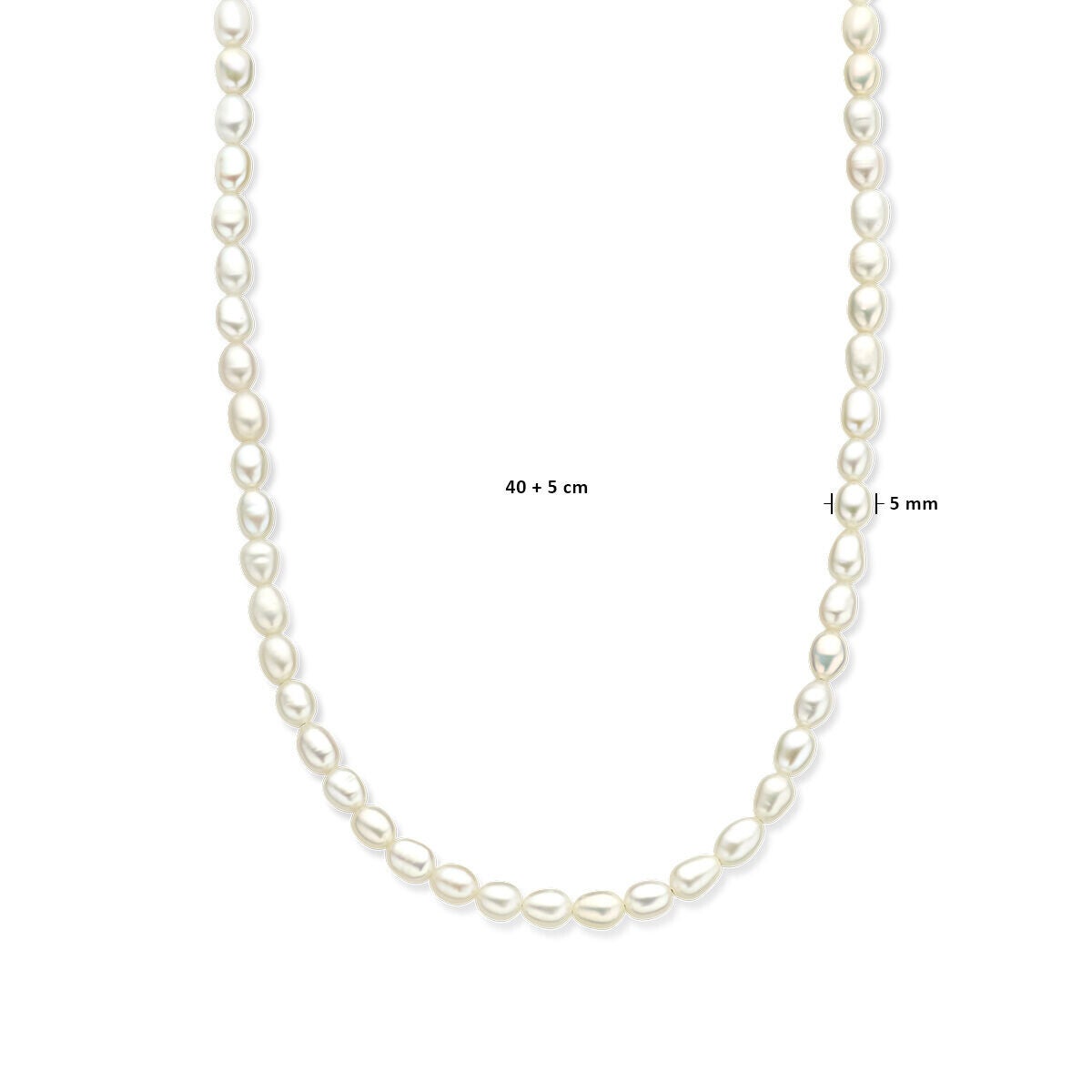 Parel collier uitgevoerd met 14k geelgouden karabijnslot en extensie. Het collier is geregen met zoetwaterparels.