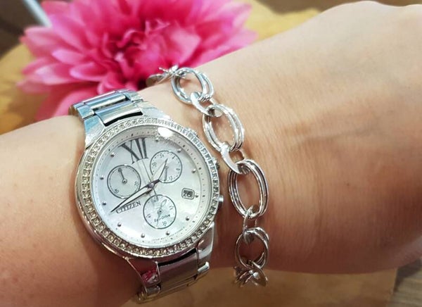 Massief zilveren gerhodineerde schakelarmband met om en om ovalen ringen en rondjes wat maakt voor een stijlvol en stoer ontwerp.