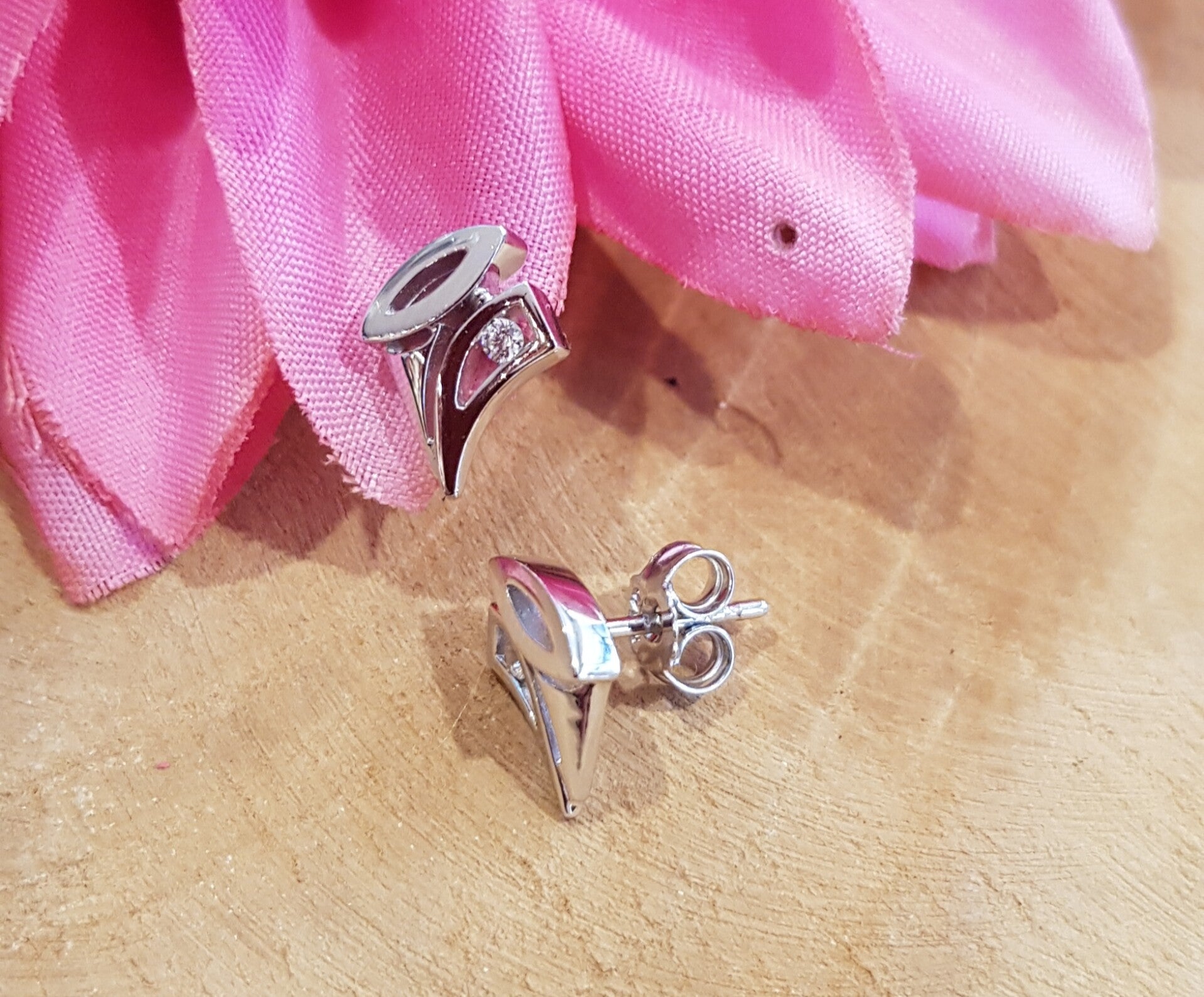 Zilveren gerhodineerde oorknoppen met verschillende geometrische vormen en een schitterende zirconia voor net dat vleugje sprankeling. Afkomstig uit de Classic lijn van Breuning.