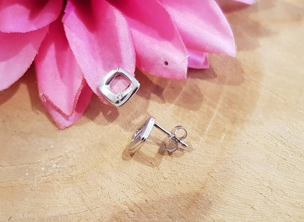 Zilveren gerhodineerde oorknoppen in een op elkaar gevouwen ruit met speling tussen mat en glans met een schitterende zirconia om het af te maken. Afkomstig uit de Classic lijn van Breuning.