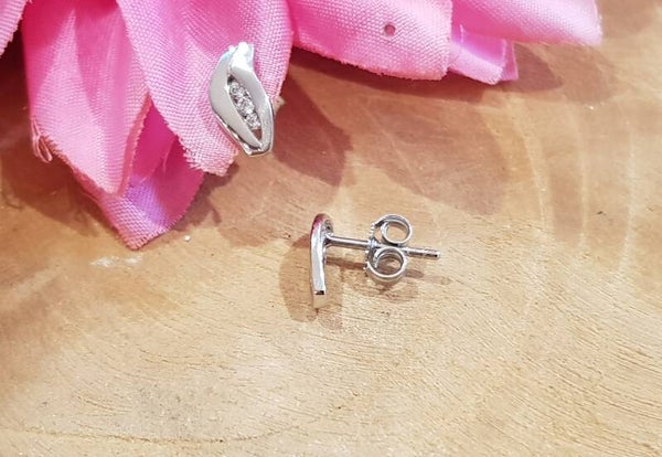 Zilveren gerhodineerde oorknoppen die met elkaar vloeien in een golf met schitterende zirconia's.