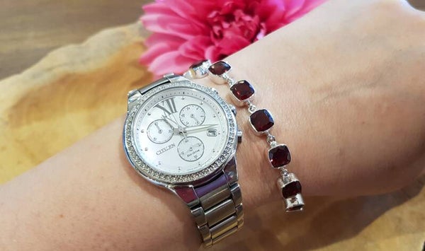 Zilveren armband zilver met vierkante facet geslepen edelstenen.