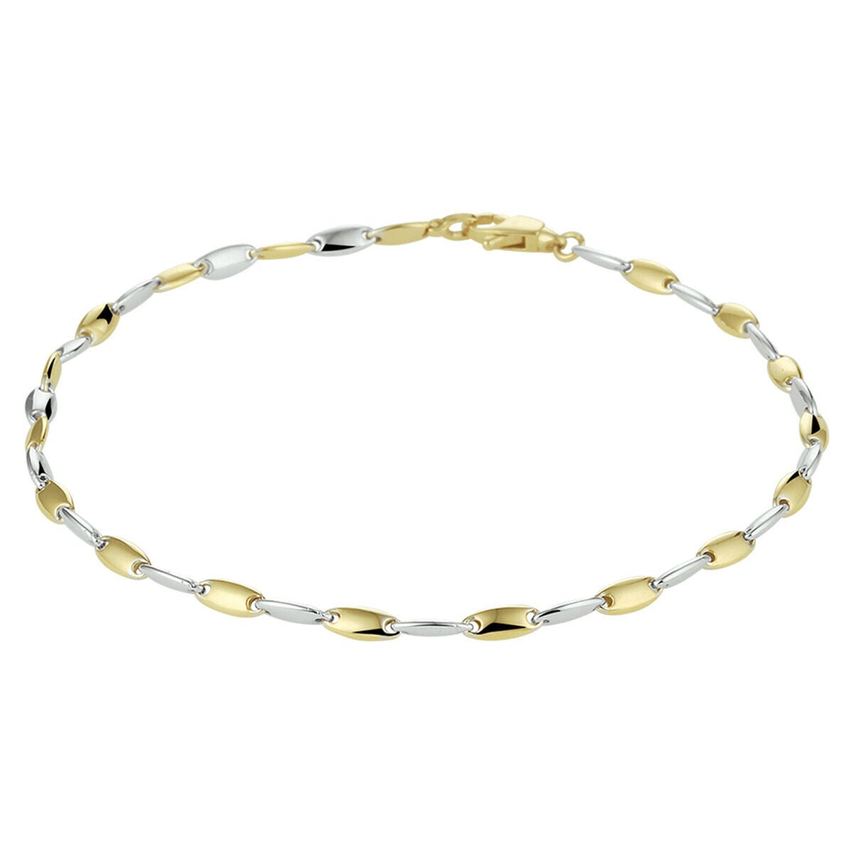 Bicolor geel- en witgouden armband, semi-holle fantasie schakel.
