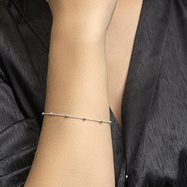 Zilveren armband met anker schakel en bolletjes.