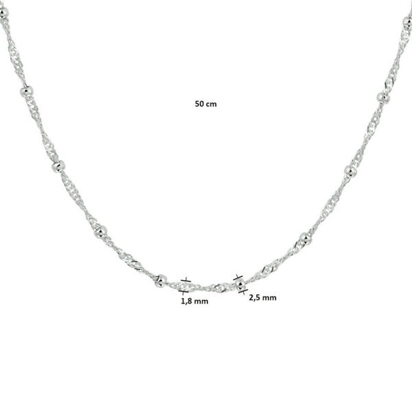 Gerhodineerd 925 zilveren singapore collier uitgevoerd met bolletjes van 2.5mm.