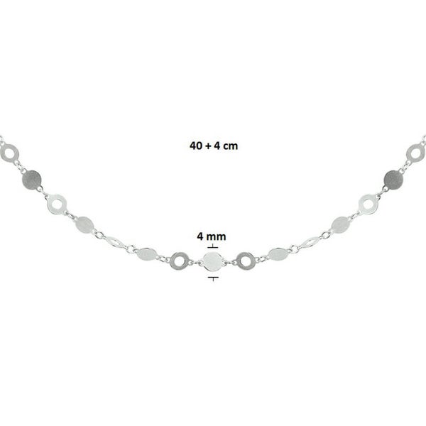 Dit trendy gerhodineerd 925 zilveren collier heeft een draaglengte van 40cm met een extensie van 4cm. Het collier is uitgevoerd met rondjes van 4mm en een karabijn sluiting. Info: Gerhodineerd zilver is door de rhodiumlaag beter bestand tegen verkleuren en krassen.