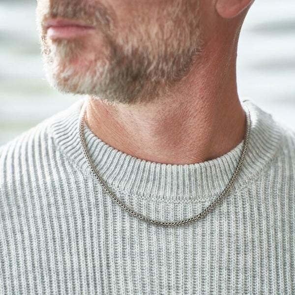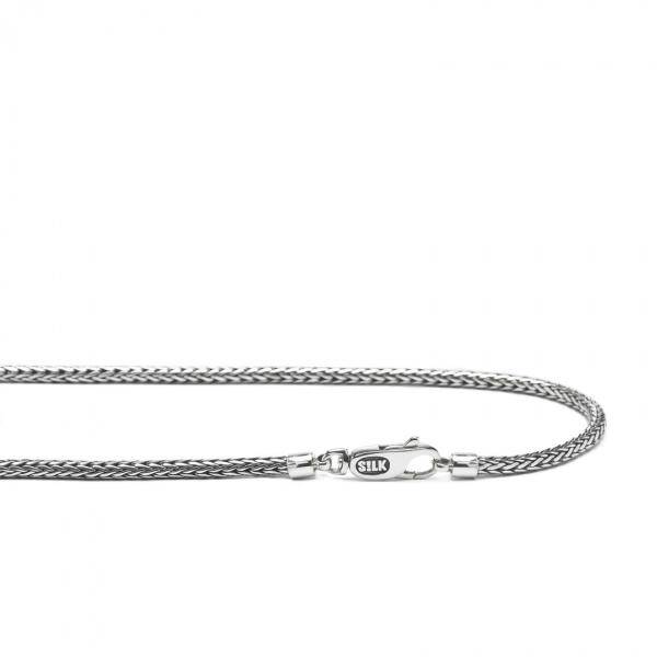 Deze zilveren rond gevlochten ketting komt uit Roots collectie van Silk met een karabijnhaak.