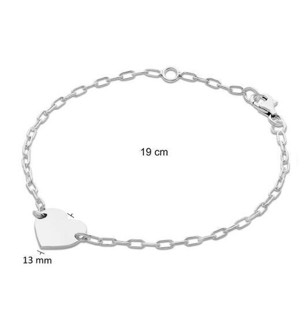 Zilveren gerhodineerde armband met paperclip schakel en een plaathartje. Hier kan een letter ingegraveerd worden of een korte naam van 3 letters. Deze gravure is gratis.