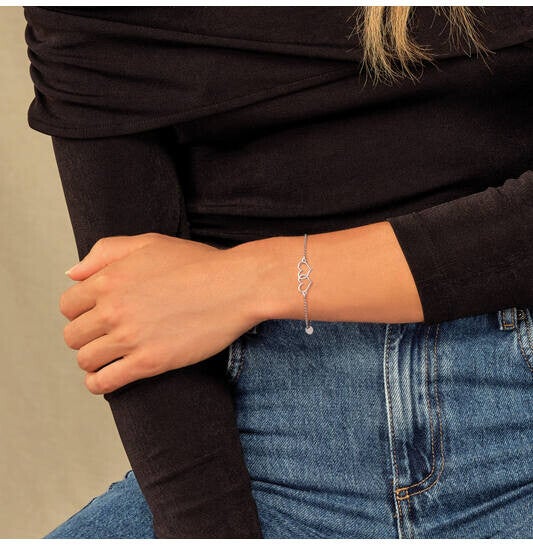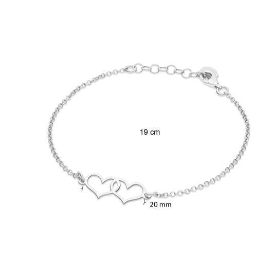 Zilver gerhodineerde armband met fijn jasseron schakel met in het midden 2 sierlijke open harten.