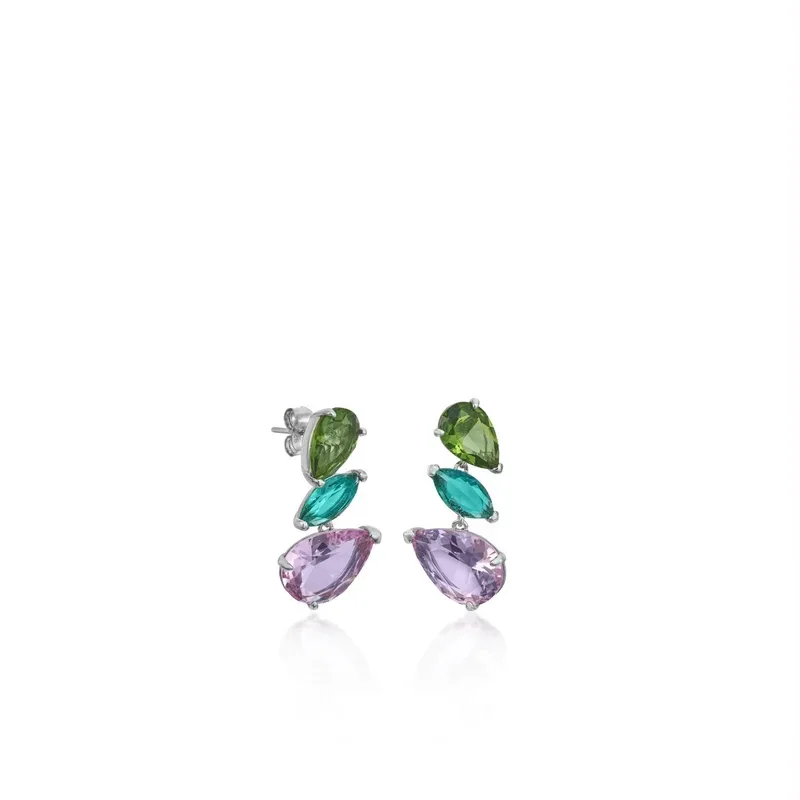 Oorbellen met steker met drie geleurde peervormige stenen.