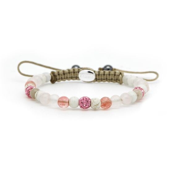 Deze echte edelstenen armband met blauw crystal van Karma is op verschillende lengtes draagbaar.