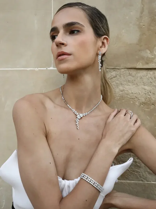 Feestelijk collier met zirkonia's en bloemmotief