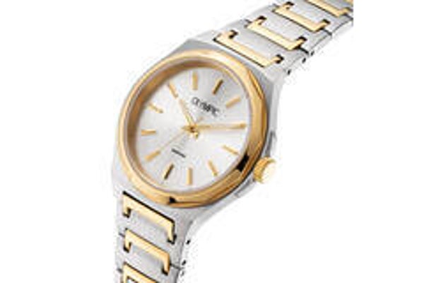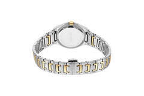 Dameshorloge met bicolor stalen band en kast met zilverkleurige wijzerplaat
