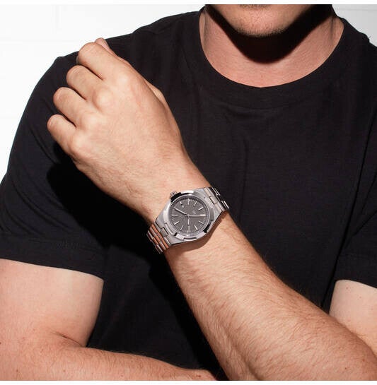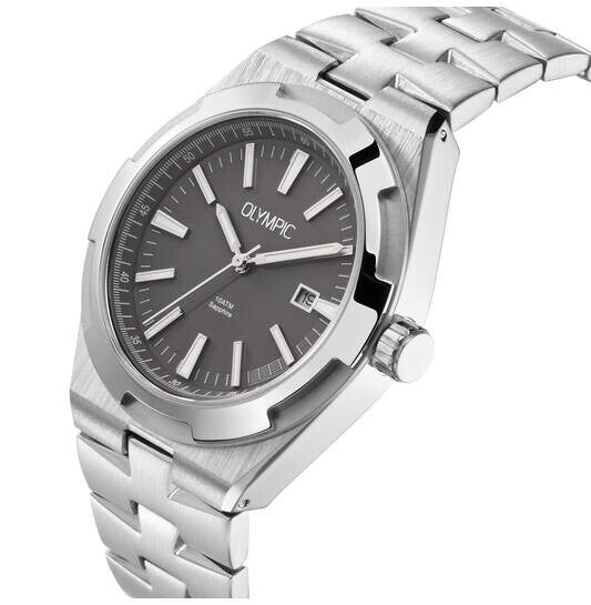 Herenhorloge met stalen band en kast met licht grijze wijzerplaat