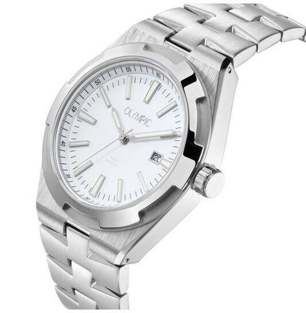 Herenhorloge met stalen band en kast met witte wijzerplaat