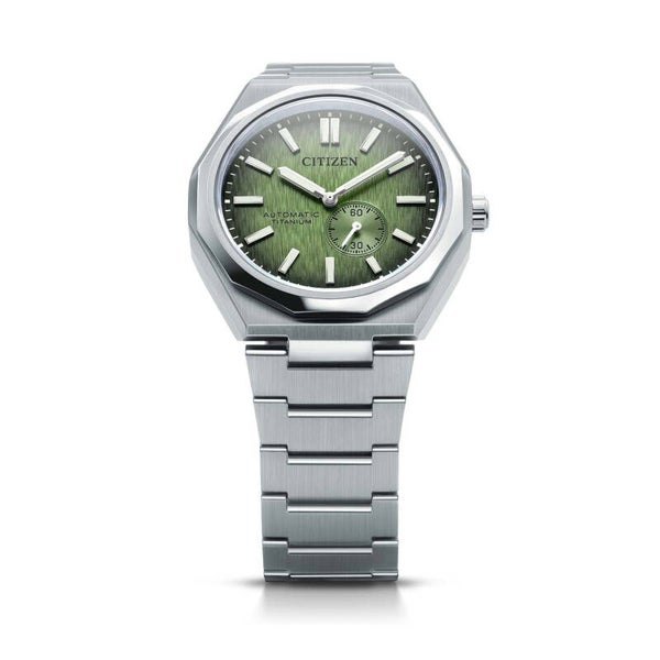 Deze Citizen uit de Zenshin 60 collectie heeft een decentrale secondewijzer en heeft een nieuw en opvallend design met 12-hoekige lunette/bezel. De getextureerde wijzerplaten hebben een elegant kleurverloop,