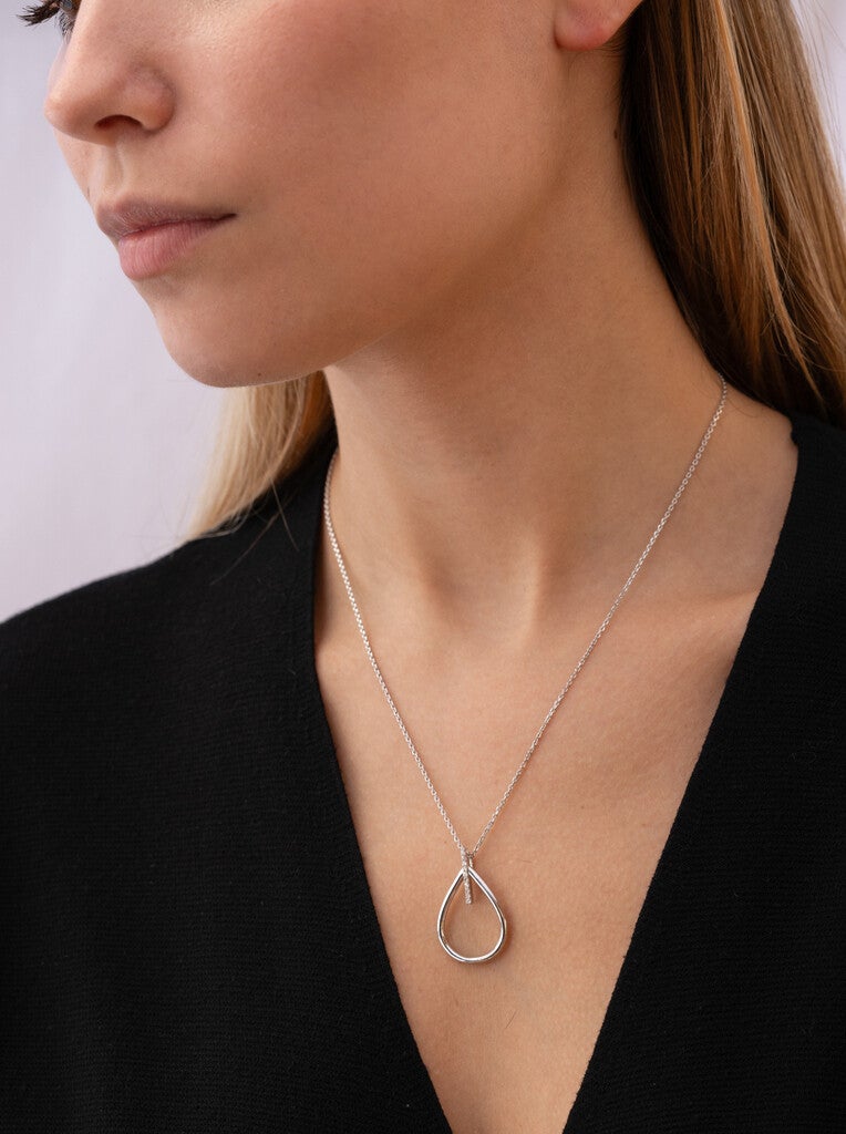 Zilveren ketting met een minimalistische en elegante stijl, een stijlvolle druppervormige hanger en een glimmertje voor een vleugje luxe.