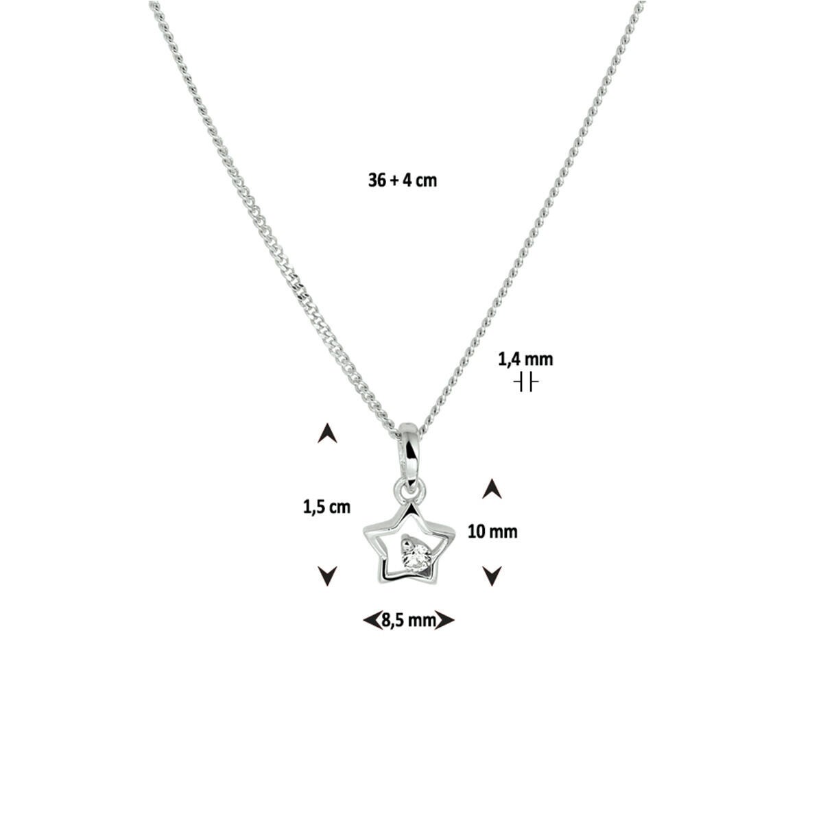 Zilver gerhodineerde kinderketting met leuk sterretjes hanger en glimmende zirconia.