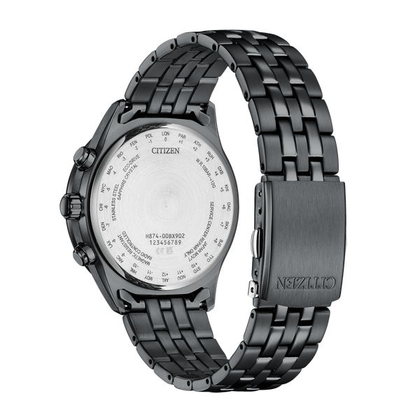 Citizen ecodrive radiogestuurd horloge (EUR, JPY, VS, China) met blauwe wijzerplaat, dit horloge is van staal in de kleur zwart met een kastdiameter van 42 mm.