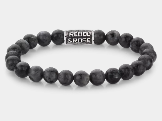 Stalen armband met larvikiet en een zilver gekleurd slot. Wie zegt dat grijs saai is? De verschillende tonen grijs maakt deze armband een stijlvolle toevoeging aan je collectie.