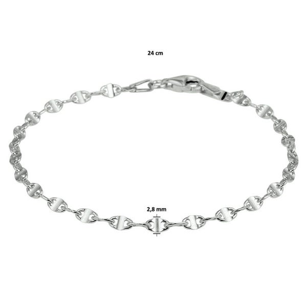 Zilveren gerhodineerde enkelband met koffieboon schakels wat zorgt voor een leuke glinstering.