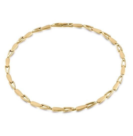 Deze ketting van titanium is in goudkleur. Het heeft een duurzame goldplating waardoor hij lang mooi blijft.