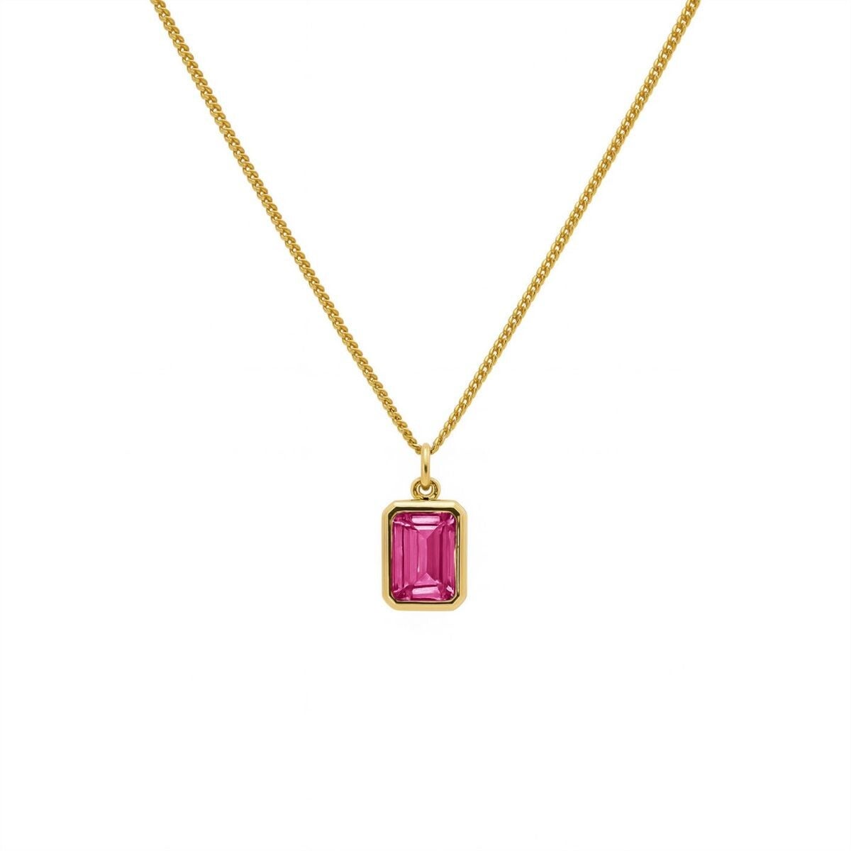 Zilver vergulde anker ketting op verschillende lengtes te dragen van 42 tot 45cm. Met een Ruby Red gekleurd zirconia in vintage baquettevorm.
