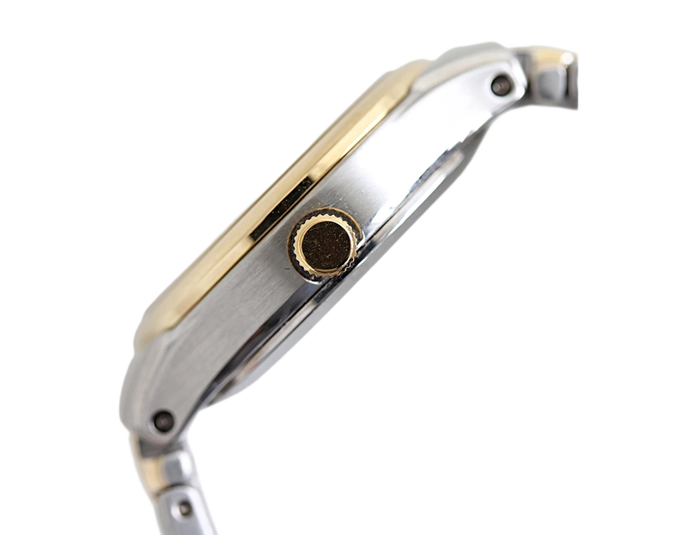 Dit Citizen Eco-drive horloge van roestvrijstaal in bicolor uit de elegance collectie heeft een witte wijzerplaat met goude strepen index en een schakelband wat zorgt voor een fijn en elegant ontwerp.