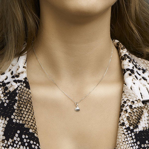 Zilveren hanger in de vorm van een klein schelpje.