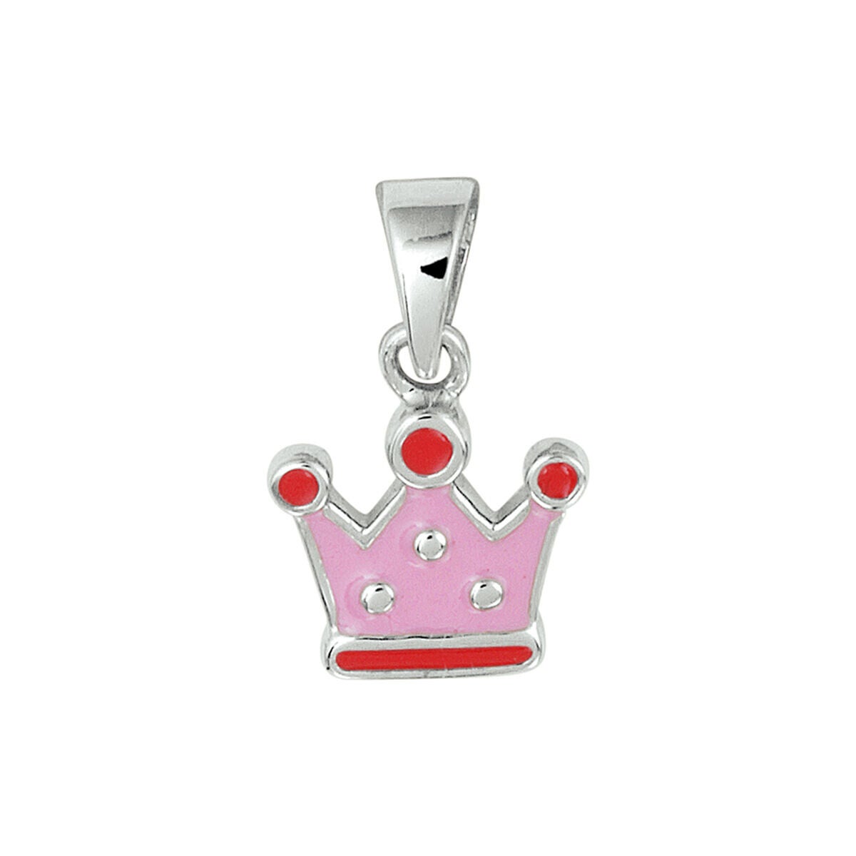 Zilveren gerhodineerde hanger in de vorm van een roze kroon met rode accenten.