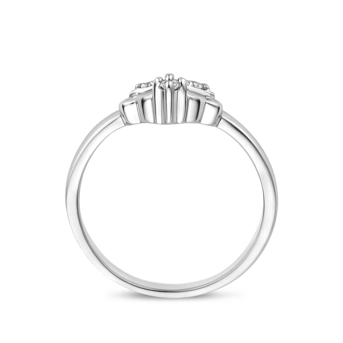 Zilveren gerhodineerde ring met een royaal kroontje en versierd met schitterende zirconia's.