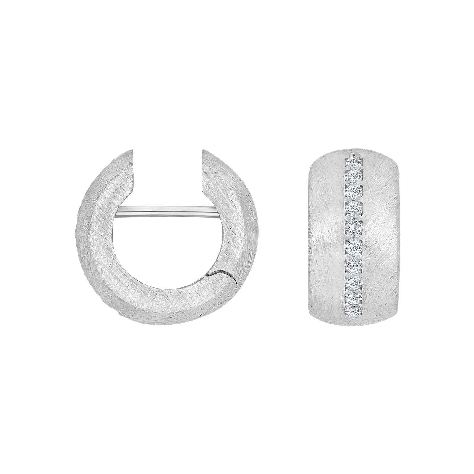 Zilveren gerhodineerde matte oorringen met mooie bolle vorming en een schitterende rij zirconia's in het midden. Een tijdloze klassieker passend bij alle jaren.