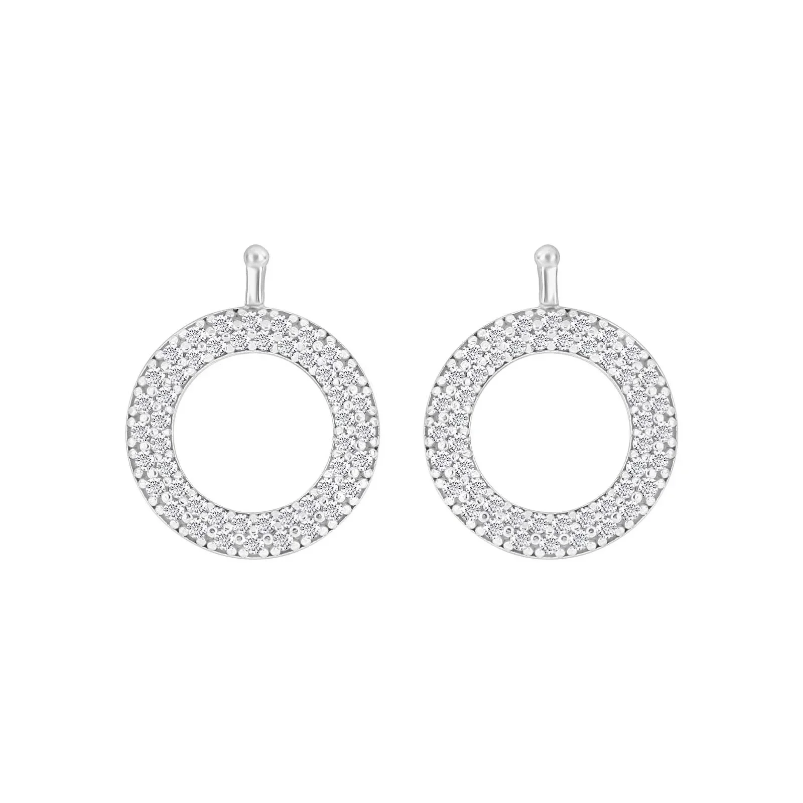 Zilveren gerhodineerde oorhangers in de vorm van een open rondje versierd met schitterende zirconia's die zorgen voor een elegante uitstraling.