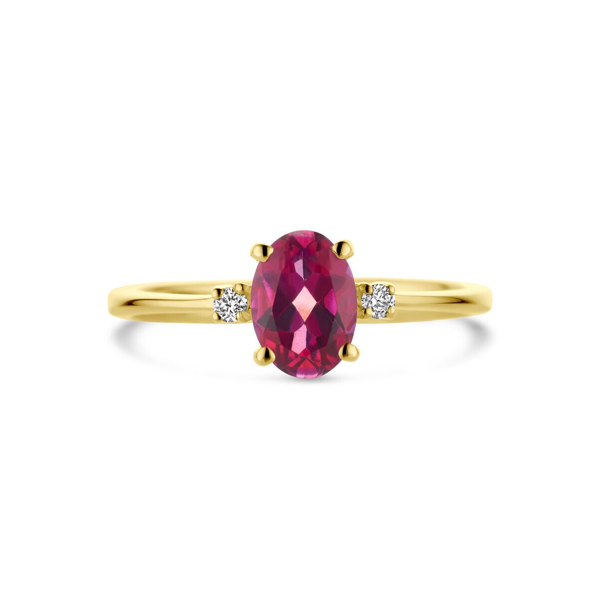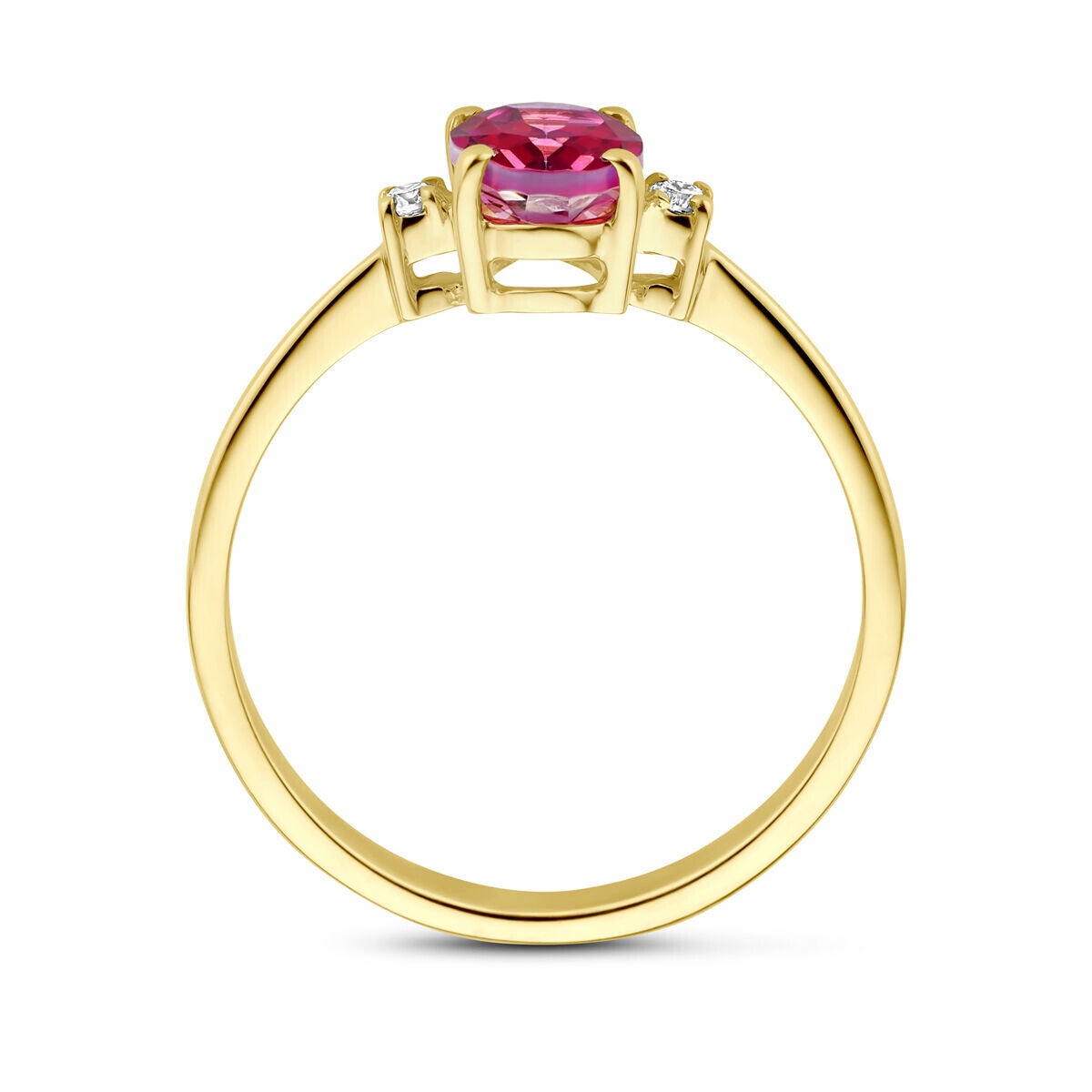 14k Geelgouden ring met roze topaas en diamant 0,04ct.