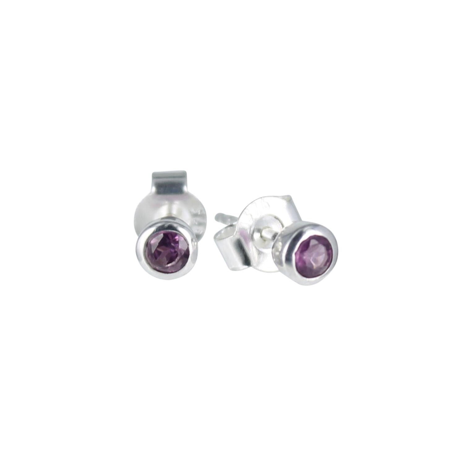 Zilveren oorknoppen Rhodoliet