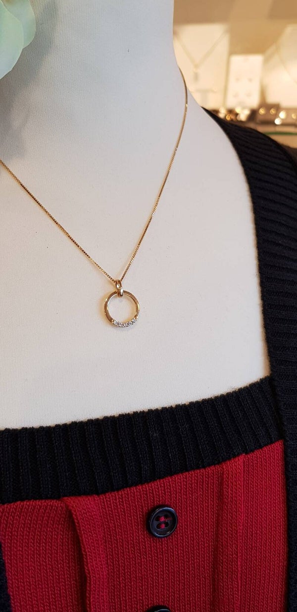 Deze 14 karaat geelgouden ronde hanger is gezet met 5 diamantjes briljant geslepen.