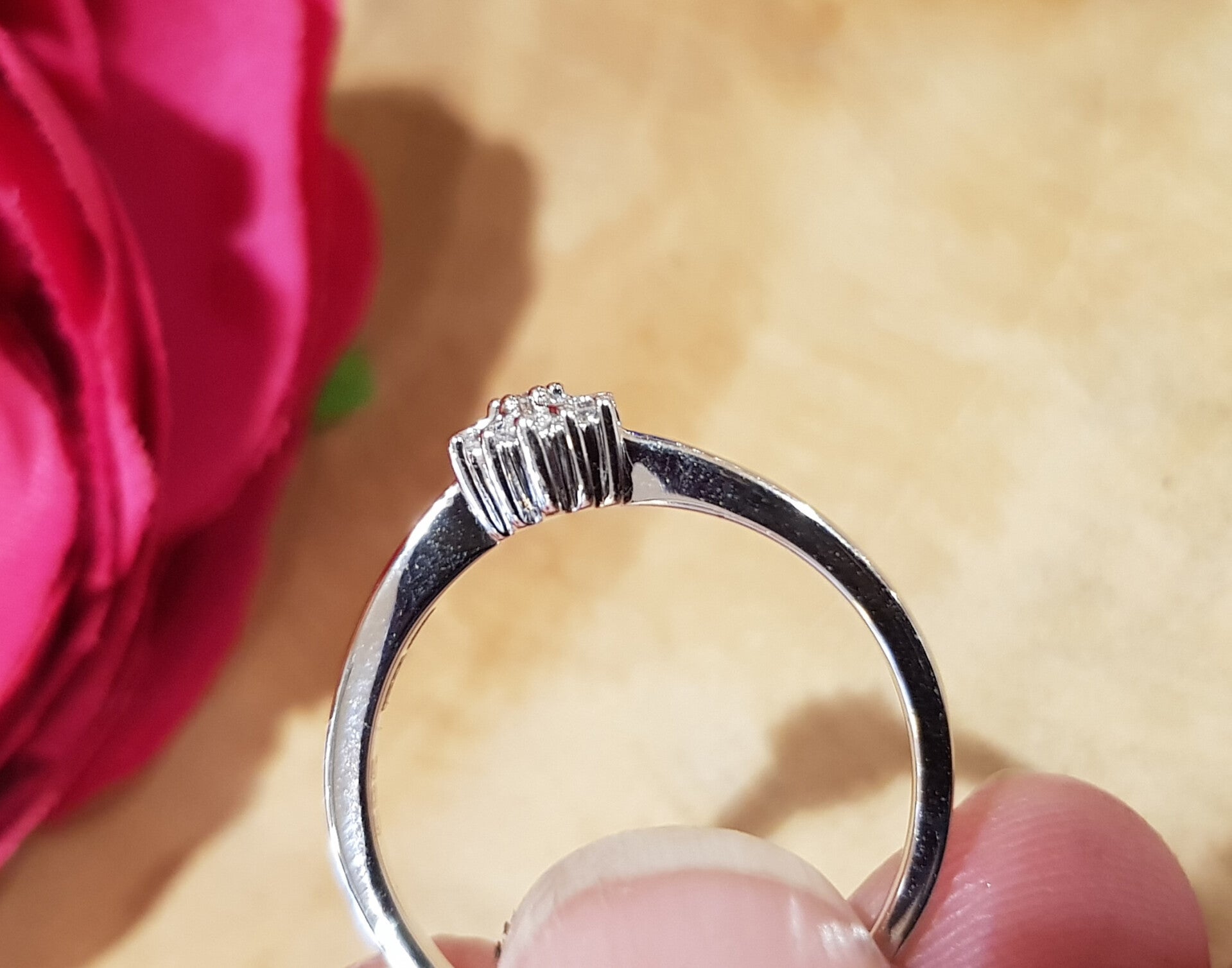Deze 14 karaat witgouden ring heeft de vorm van een ijskristal gezet met diamanten met een totaal van 0,10ct.