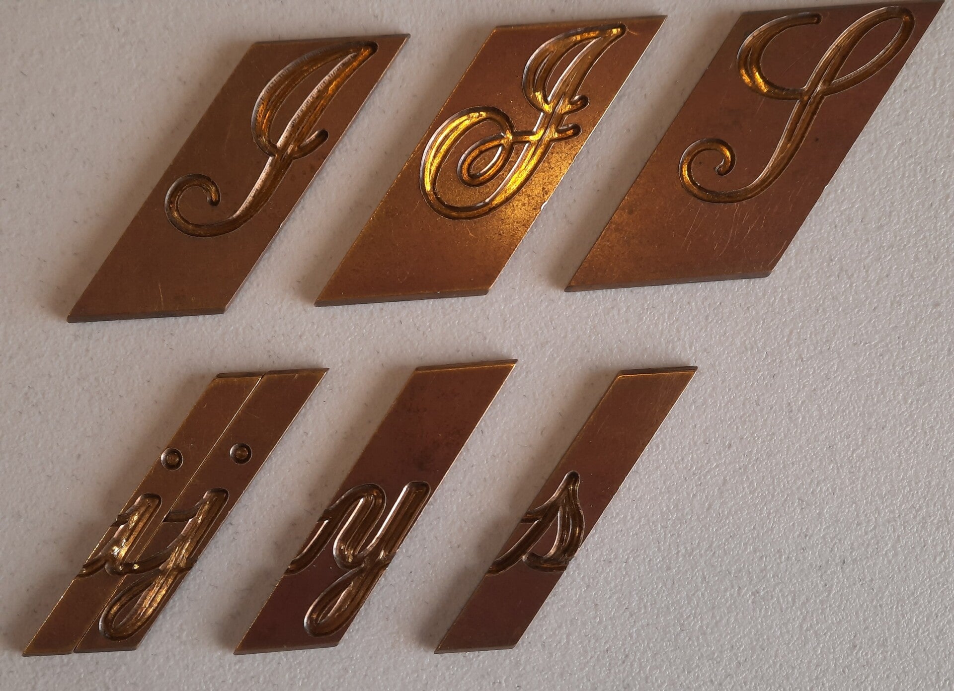 Op de foto met de SIERLETTERS zie je van links naar rechts van boven naar onder: Hoofletter I , Hoofdletter J en de Hoofdletter S met daaronder de kleine letter i en j, de kleine griekse y en de kleine letter s.