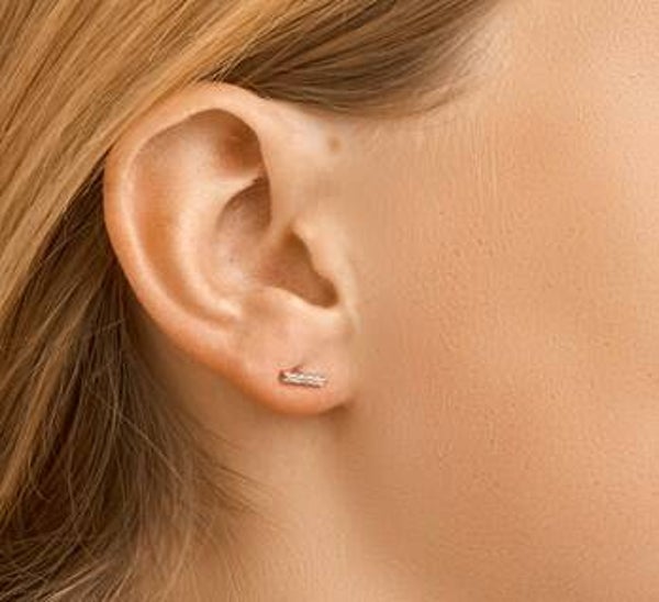 Gerhodineerde zilveren oorknoppen in de vorm van een balk met schitterende zirconia's.
