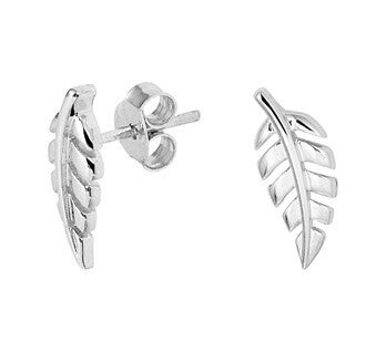 Gerhodineerde zilveren oorknoppen in de vorm van een veer. Voor de natuurmensen die helemaal leven in het hier en nu en een trendy vleugje aan hun uiterlijk willen toevoegen.