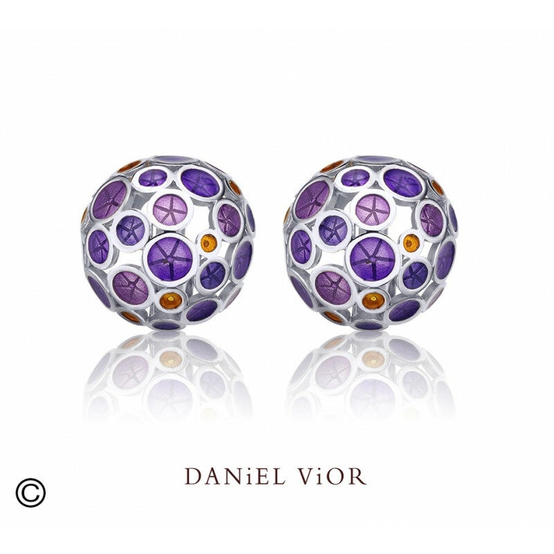 Deze oorknoppen van Daniel Vior met paarstinten emaille zijn oorstekers voorzien van een clipsluiting die eroverheen sluit. Zo kan je ze niet verliezen.