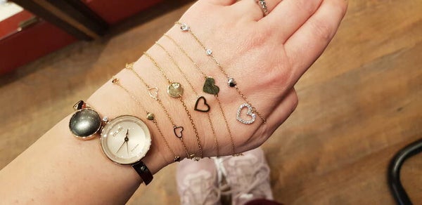 Armband 14 krt. goud van plat ankerketting 0,4mm met massieve hartjes, afmeting 3,9 x 3,9mm. Met veering als sluiting.